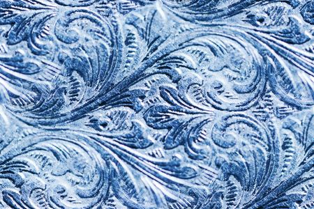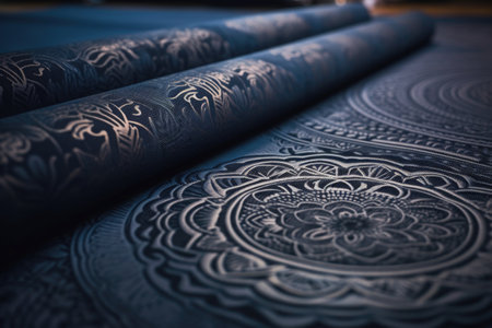 An intricately blue floral pattern with textured, detailed leaves and flowers, emphasizing artistic style and craftsmanship. AI generated image