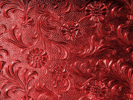 Pattern of silver metal plate with flower carved background, Thai style in temple