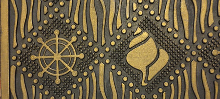 Decorative element on the wall as a background, closeup of photo