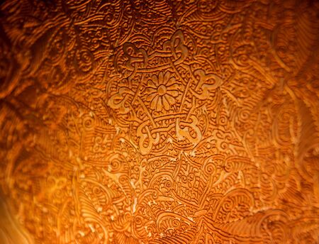 Background texture, pattern. Close-up of golden oriental ornament.