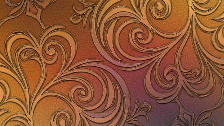 A vibrant and intricate floral pattern with swirling designs in warm colors