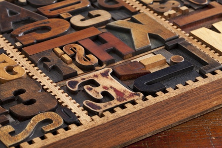 abstract of vintage wooden letterpress printing blocks stained by color inks