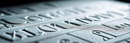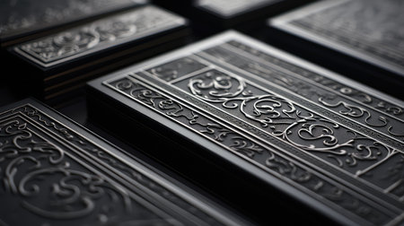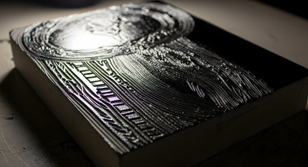 Medium shot of embossing technique in letterpress printing capturing raised designs creating tactile depth on thick paper.