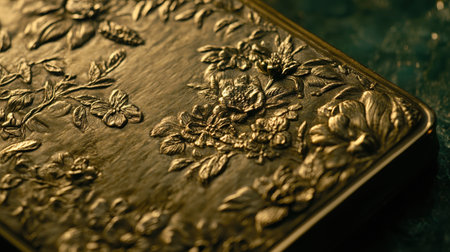 Discover a beautifully crafted vintage metal case featuring intricate floral designs, perfectly illuminated by soft light, showcasing exquisite details and textures.