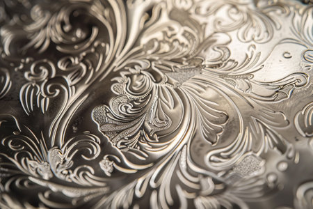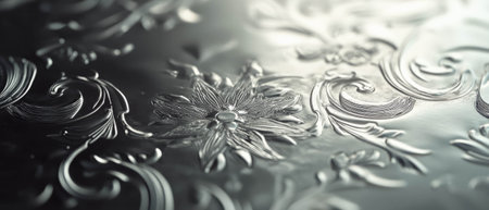 Explore the beauty of intricate silver floral patterns with elegant leaves and detailed embellishments, ideal for artistic projects and decorative applications.