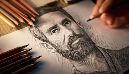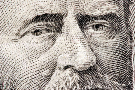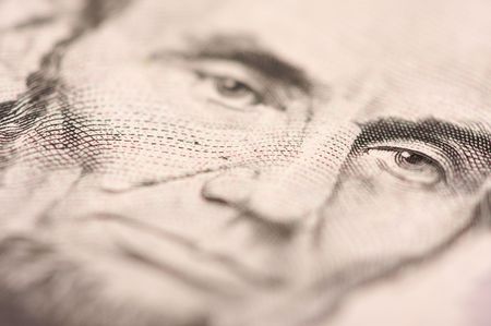 Abstract Macro of U.S. Five Dollar Bill's Abraham Lincoln face with Narrow Depth of Field.