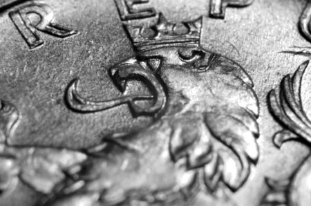 Close-up of a golden coin. Macro. Shallow depth of field.