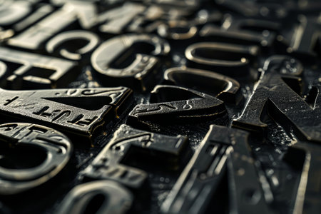 Detailed view of metal letters on a dark black surface, Experimenting with different typography styles for marketing campaigns