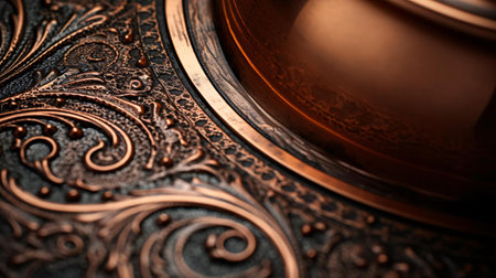 This captivating close-up showcases an intricate floral design on an antique metal surface. The elegance and detail highlight expert craftsmanship, perfect for artistic projects.