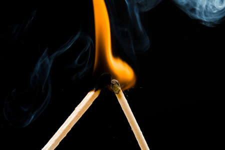 Flash of flame on a match. Close-up. Macro photography.