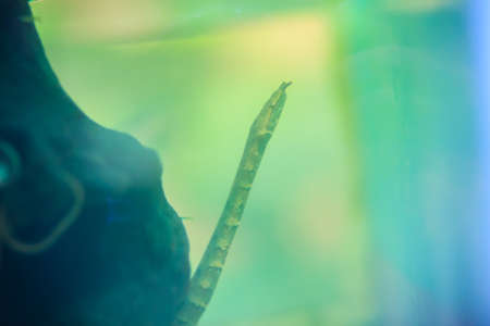 Trumpet fish trumpetfish swims on water surface in Angra dos Reis, State of Rio de Janeiro, Brazil.