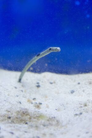 Spotted garden eel of aquarium with anemone in coral reef. Heteroconger hassi species of family Congridae living in Indo-Pacific seas, from Red Sea to Polynesia and Australia