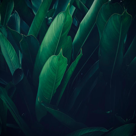 Tropical Foliage Leaves of Heliconia Plant in Dark Tone Color Natural Pattern Background