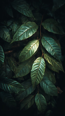 Green leaves. Low key modern style toned background image