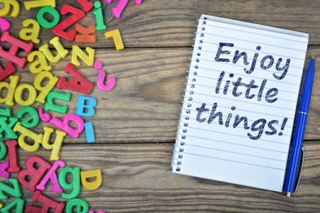 Enjoy the little things quote composition. Hand drawn lettering phrase for poster, decoration, t-shirts. Vector illustration.