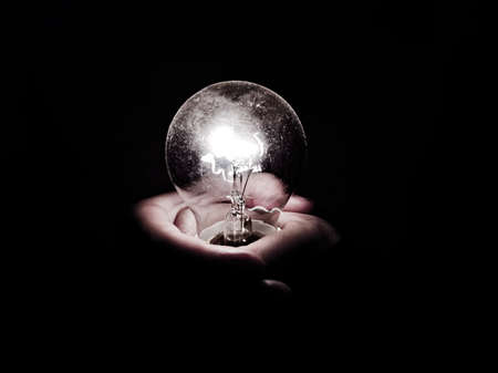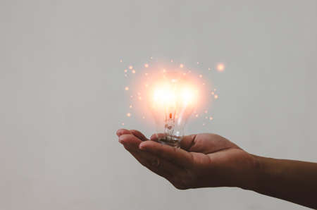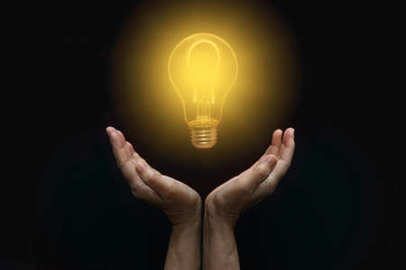 Light bulb in the hands of a man. Idea concept. The concept of electricity consumption.