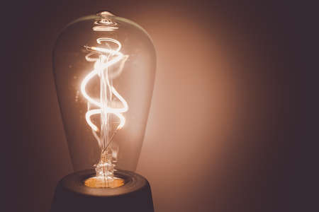 Beautiful retro luxury light lamp decor glowing. Abstract dark background with creative artwork decoration of glowing bulbs.