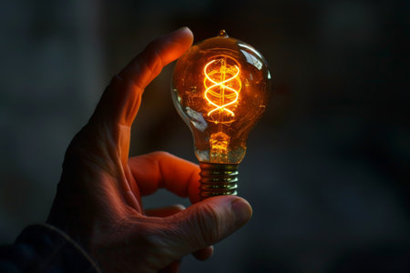 A hand holds a glowing vintage-style light bulb in a dark environment, symbolizing ideas, creativity, and innovation. The scene evokes inspiration and the power of imagination.