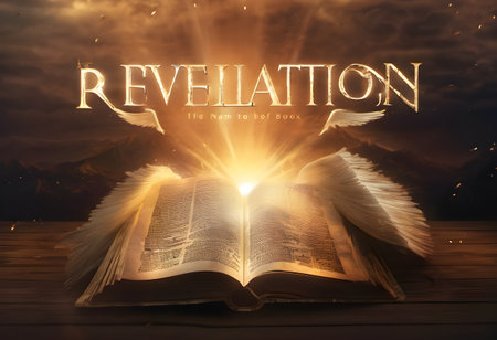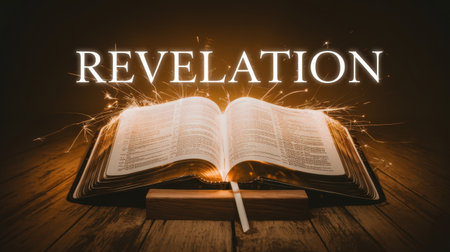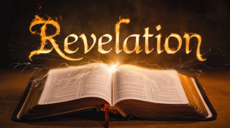 The word Revelation shines brightly above an open book, representing the pursuit of knowledge and enlightenment. This captivating image evokes a sense of discovery and inspiration, perfect for educational or spiritual themes