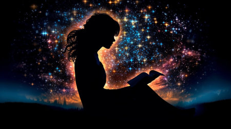 Silhouette of young woman with stars on background