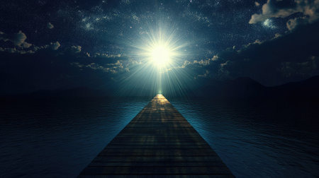 An illuminated bridge extending into a point of light, showing a successful business journey.