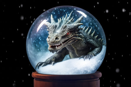 Dragon in a glass sphere. Symbol of the New Year and Christmas.