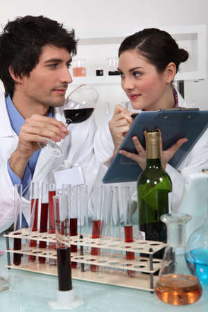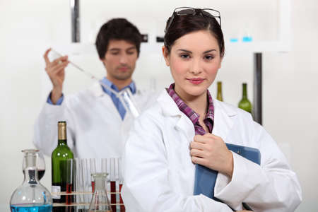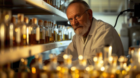 The picture of the perfume maker working inside the laboratory about research and testing new perfume or cologne, the perfume maker require skills like chemistry knowledge and product testing. AIG43.