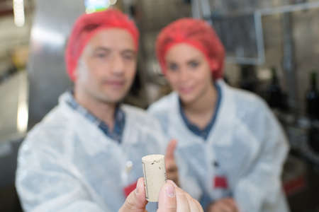 Closeup hand of man open bottle of white wine and sommelier making notes at degustation card