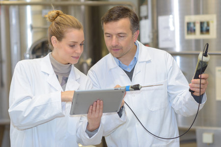 A day of innovation. Shot of two colleagues working together on a scientific project using a digital tablet.