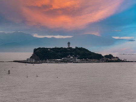 Enoshima town and sunset sea in kanagawa, Japan