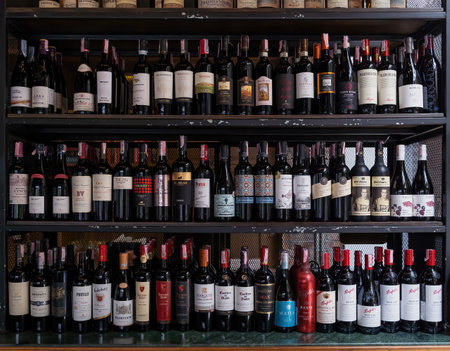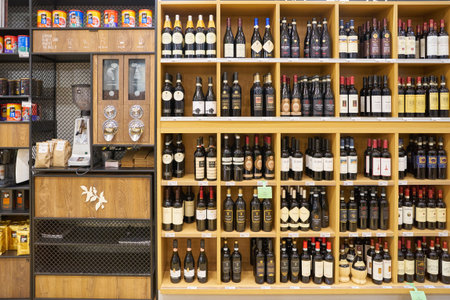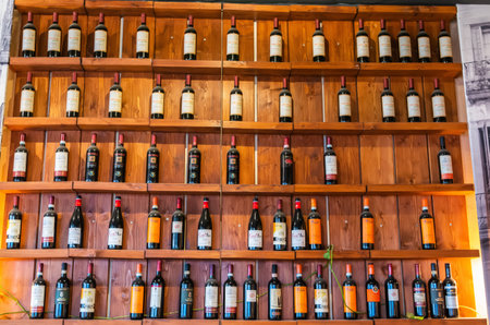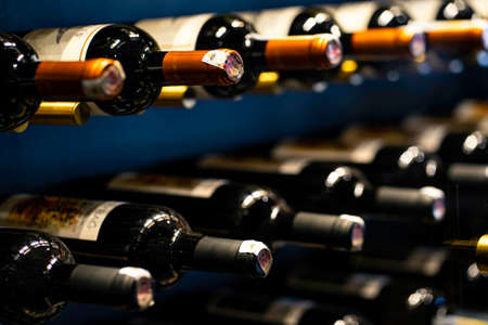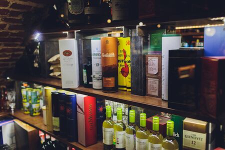 TURKEY, ISTANBUL - September 2020. Wine bottles on shelves storage collection