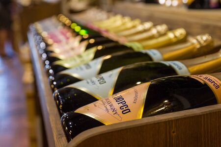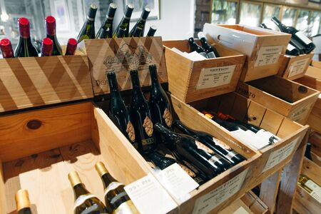 usa - october, 2019 Liquors Spirits Wine Shop, Alcohol Drinking Red and White Import Wine in Bottles Selling.