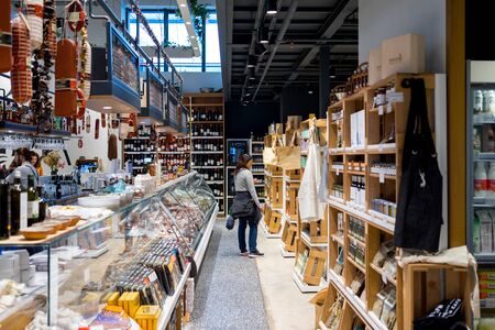VENICE, ITALY - CIRCA MAY, 2019: interior shot of Bottega Dei Sapori - Gourmet Shop in Venice Marco Polo Airport.