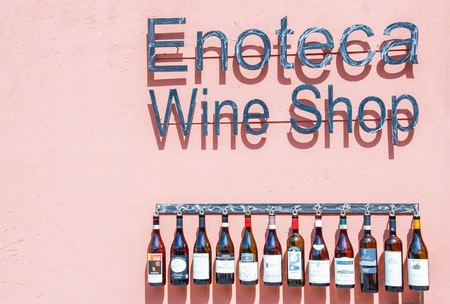 MILANO, ITALY - OCTOBER 14, 2015: Different kinds of italian wines on display in a shop window in Milano, Italy.