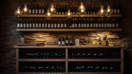 collection of rare and expensive wines in a cellar three. This image is created with AI.