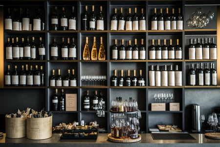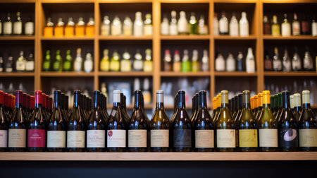 Photo Of Bottles Of Wine In A Shop. Generative AI