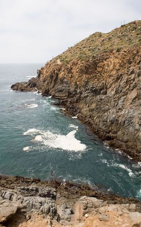 Bayside trail along the shore. San Diego peninsula, Point Loma. Cliffs and Ocean, California