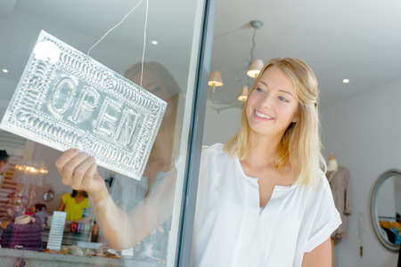 Sign OPEN on a restaurant shop , Open sign board on glass door in modern cafe coffee , food and drink concept