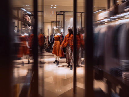 In a contemporary clothing store, racks display an assortment of fashionable apparel. The bright lighting enhances the inviting atmosphere, making it ideal for shoppers to explore. Bokeh. Generate AI.
