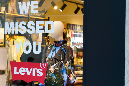 Bordeaux , Aquitaine / France - 05 12 2020 : Levi's Store Logo Levi Strauss levis American shop clothing company denim jeans brand