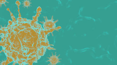 Yellow 3D rendering on a turquoise background outbreak of coronavirus and background flu dangerous concept of pandemic medical health risk with disease cells