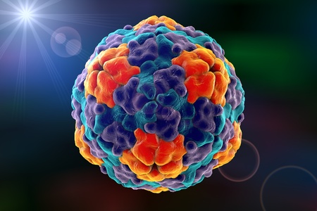 Hepatitis A virus, 3D illustration. A virus transmitted by drinking water and causing hepatitis