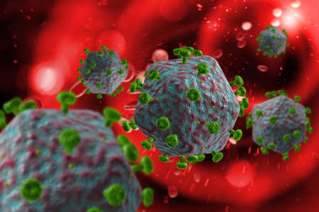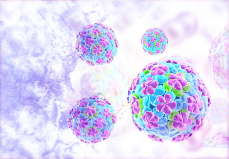 3D render of a medical background with Hepatitis A virus cells