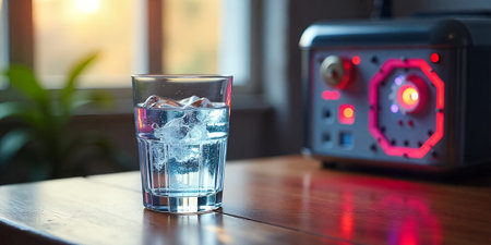 Refreshing Iced Water in Glass on Wooden Table Sunset Light