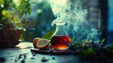 Herbal and floral tincture in bottle for natural remedies, aromatherapy, and alternative medicine