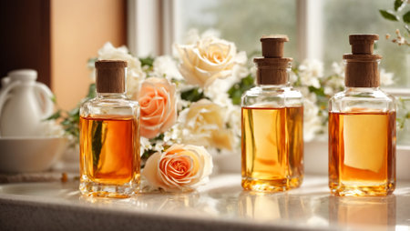 Aroma, two bottles of aromatic oil. Relaxation, beauty image.