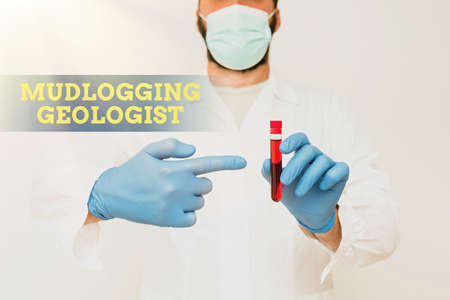 Inspiration showing sign Mudlogging Geologist. Business idea gather information and creating a detailed well log Chemist Presenting Blood Sample, Scientist Analyzing Research Specimen