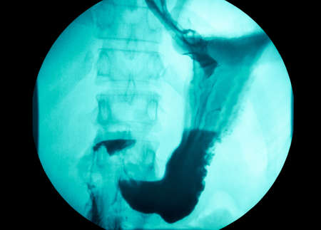 Columnar epithelium of human gall bladder under the microscope in Lab.