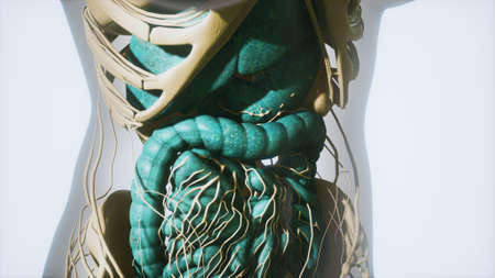 3D Illustration of Human Digestive System Anatomy with Medical Background, for Science and Education