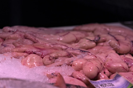 Fresh pig organs for sale in the fresh Thai market at the morning.